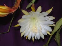 今日も雨。つぼみが1個かなり開き始めた。今夜咲くと思う。長かったなあ、12個つぼみを持ったが、6個になり最後は先に大きくなった3個に栄養を取られるのか残りは成長しないで枯れていきそうです。弱肉強食自然界はすごい。録音の為にビューローへ行く。常務さんからアメリカ土産のチョコレートを頂く。遅めのお昼で瀬戸ちゃんと会う。4時過ぎまで掛かってとりあえず残りの2本を収録したが、チェックは次回とする。勢理客さんと入れ違ってお会いできなかった。花が朝よりも広がっている、どのくらい大きくなるのだろうか。夜が楽しみ、と思っていたら6時頃からどんどん大きくなる。隣の可知さんに声をかけたら見に来てくださった。たいした茎でもないのに大きな花が3つも咲きそうなのでびっくりしておられた。10時花一輪は完全に咲いた。見て下さい。