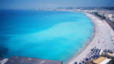 5時過ぎに目が覚める、やはり時差のせいかな?お天気もいいのでルームメイトと朝の散歩ホテルの周辺を歩く。Iさんは朝一で今回の旅行の業務担当のミキに出掛けた、交渉の結果、三星から四星への料金UPの差額はミスしたホテル持ちとなった。すごい、さすが。朝食を済ませて部屋替え、荷物を移動した後全員で朝の花市に出掛ける。ニースの空はきれいな青、旧市街地の真ん中でにぎやかな花の市は果物や野菜も格安で売られている。大きなサクランボが1キロ4.8ユーロー日本円で600円ぐらいかな、思わず買ってしまう。花も安いが買うわけにはいかない、目の保養でした。Nさんもサクランボを買った、彼女は1キロ5.2ユーローだったと言う。お互いのサクランボをたべっこしたら私の方が甘いと彼女は云って安い方が美味しいなんて許せないと笑った。海岸まで歩く、ニースの海が目の前に開けた。きれいな海の色、こんなところにいる自分が信じられなかった。3段階に海の色が違う、あまりの美しさにしばしみとれる。暑いはず、だってもう泳いでいるし、海岸でみんな体を焼いている。紫外線も何のそのです。海岸をぶらぶらして要塞だった山へ登る。ちょっときつかったが展望台へ出たときはみんなで歓声をあげる。空港まで見えた。山の向こう側、観光地の反対側へ降りた、観光案内には無い地元の街だったが気を付けて歩き、レストランで昼食を取る、看板に出ていた本日おすすめはパンキッシュとサラダ、コーヒーが付いて11ユーロー、飲み物にビールを頼んだが多分地ビールでしょうとても美味しかった。みんな私の袋に手を入れてサクランボをつまみながら2台のタクシーでシャガール美術館へ行く。とにかく暑い、聞いていた気温と全然違うもうニースは真夏でした。シャガールは晩年の宗教の色濃い作品がほとんどでした。館内でカナダからの老夫婦とカメラのシャッター交換などしている内に出来た物を送るからとアドレスを聞かれたが、果たして来るか?グローバルコミニケーションとなるか?わかりません。