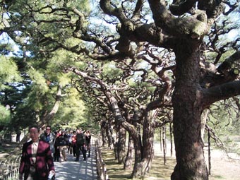 晴れ、今日から3泊4日の四国周遊の旅です。10時半に家を出る、羽田12時15分集合の阪急のツアーに参加。1時半無事離陸、2時半に高松空港着陸。現地の添乗員(1年目の新入社員)の誘導でバスに乗る、一行は39人でした。昨年に続いて我らは川添栄一・千代子に川添善次郎(栄ちゃんの従兄弟)の3人です。空港から市内へ入り栗林公園まで40分のバス、全員入場料を払い中に入る。私は約50年前に一度入りましたが、船旅で体調を崩した後だったので松の印象しか無かったが、今回入ってみてやっぱり松だったのだと、改めて印象を深めた。瀬戸大橋が一望出来るゴールドタワー(158メートル)に500円払ってエレベーターでのぼる。中からは外がよく見えるガラス張りで外からはゴールドに見える特殊ガラスのようでした。瀬戸大橋が出来てもう15年になるとのことでした、天気に恵まれ実にきれいなビューでした。明日はあの橋を渡るのだとガイドさんに説明されて、一路琴平に向かう。6時過ぎ金比羅神社の参道に有る八千代旅館に着く、手前にここを上がると琴平歌舞伎の劇場が有ると聞いた、のぼりが並んでいた、近々上演とか、テレビでよく見るあの劇場が身近に感じた。旅館はひどい物でした、畳はすりきれていて煎餅布団、食事も質素なものでしたが、屋上に有る露天風呂は最高でした。9時から女性と言うので10時頃入りましたが誰もいなくて一人で星空を眺めながら楽しみました。