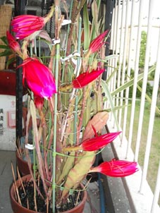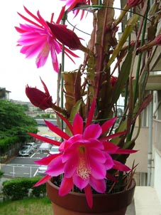 曇りのち雨。昨夜咲いた花です。夕方のつぼみの大きいのがやはり9時過ぎから開きました。朝はもう元気はないけどとても綺麗です。午後からしばぐりの定例会、3時過ぎに終わって、買い物をして帰宅。栄ちゃんの夕飯の支度をして福祉まつりの実行委員会に出る。土砂降りの雨です、もう梅雨ですね。
