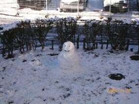 晴れ、洗濯をする。昨日、夜になって雪は止んだ、でも、折角咲いた椿の白がもう落ちていた、普通は3日ぐらいは咲いているのに、残念です。雪の中に雪だるまさんが立っている。シアトルは雨のようです。午後はテープの修正をする。