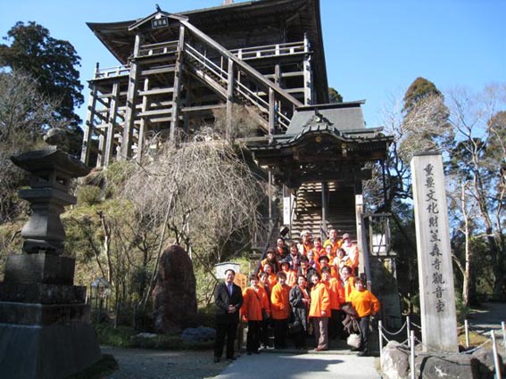 笠森観音(山の崖を利用して立てた寺で清水の舞台を思わせるものが有った)980年前の床板が踏めば崩れるかと怖いようでした、勿論立ち入り禁止の部屋です。天台宗の由緒ある寺です。十万国でお昼を食べて大多喜城へ行く。さすが県立なので65歳以上は無料とか25人中15人がこの恩恵に、さすが高齢化するボランテイア団体です。本多忠勝のお城だったそうです。ドライバーも知らないという「君津の森」大江戸温泉物語、小高い山の上に有って携帯は圏外でした。暗くなってから気づくと成田の滑走路が見えて後から後からひっきりなしに飛行機が降りてきて着陸、おかげで何となく千葉のどのへんなのか見当がつきました。ひとしきりおしゃべりしてお風呂に入って6時半から宴会は、V連の遅い新年会でした。徹底的に人件費を節約というシステムの温泉、食事も悪くなかったしみなさんも好評でお世話をした甲斐がありました。お開きの後ゲームルームで卓球を楽しみ汗だくになった。食べて飲んで一汗かいて、露天風呂で月と星をみて感激し、枕を並べて夢の世界へ。