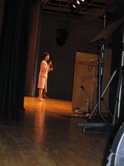8時半集合の中で中山さんにお願いしてえいえいおう!で準備開始。それぞれのセクションで10時から本格的に始動、11時に始まったセレモニーは市議さんも大勢見えたし、県会議員さんも全員見えた。とにかく暖かい中で人出も最高だったのはイベントが重ならなかったのと好天のお陰です。松島トモ子さんが早く見えたので一寸慌てましたが、着替えやら集中やらでご挨拶は終わってからになりました。満席で立ち見まで出て入れない人がかなりいました。消防法でということでした。やはりヨーカ堂の店内放送が効いたようでした。7階も駅前も早々と売り切れ状態で3時半の終了が15分早くなってしまいました。ゴミ出しも順調に行き4時半にはすべて終了となりアコスの事務所にお礼のご挨拶も石田常務さんもつきあって頂いて終了。降りてきたらしばぐりの人が何人かいて結局打ち上げのお茶となりました。暗い空もきれいでした。袖からの講演風景と接待役の秋元さんと楽屋での記念写真です。