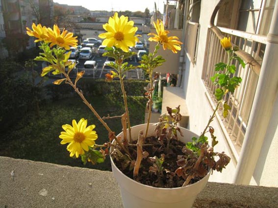 去年の菊が今年も咲いた。