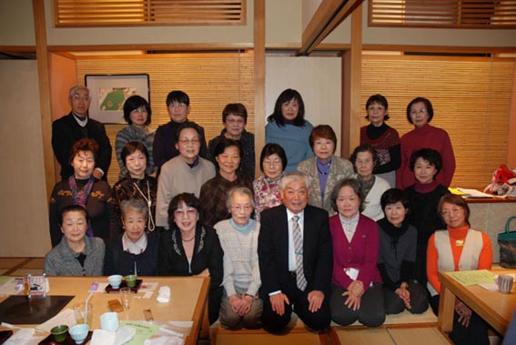 晴れ、洗濯2杯、乾燥度高し、手はがさがさです。栄ちゃんのお昼の支度をして出かけます。しばぐり新年会と定例会です。草加駅、松原団地駅と回ってくれるバスに乗って11時越谷の「源氏」に到着。掘り炬燵式の部屋で参加者23名、これからのしばぐりを背負ってくれる人たちです。30分で定例会は終わる。その後12時から新年会、荒巻さんの乾杯の音頭で始まり、それぞれのひとこと挨拶も無事に終わり、最後の手締めは鶴見さんの関東一本締めで終了。またバスに揺られて2時半に帰宅。3時から歯医者さんです、うっかり飲んでしまったのでタクシーを使う。治療費40円(消毒のみで本日は格安)タクシーは帰り往復1870円也でした。次は俺もという栄ちゃんの予約も貰ってきた。またしばらく歯医者さん通いです。鶴見さんから届いた新年会の写真です。