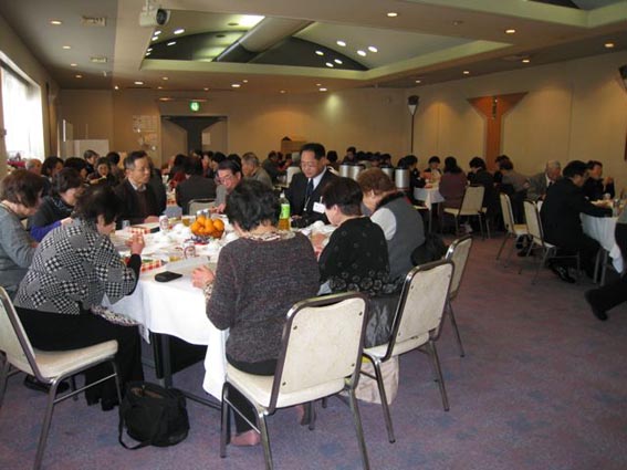 参加者70人、席をくじ引きにして好評でした。